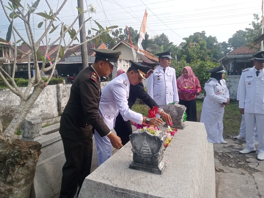 Lumajang, JEJAKPERISTIWA.CO.ID – Ada yang beda tahun ini, Camat dan kepala desa se-kecamatan Kedungjajang sebelum melaksanakan upacara bendera pada HUT RI ke-80 yang bertempat di KWT Wonorejo dilakukan nyekar atau tabur bunga di makam Patih zelfstandig afdeeling Lumajang Singowiguno yang memerintah tahun 1890-1920 M.
